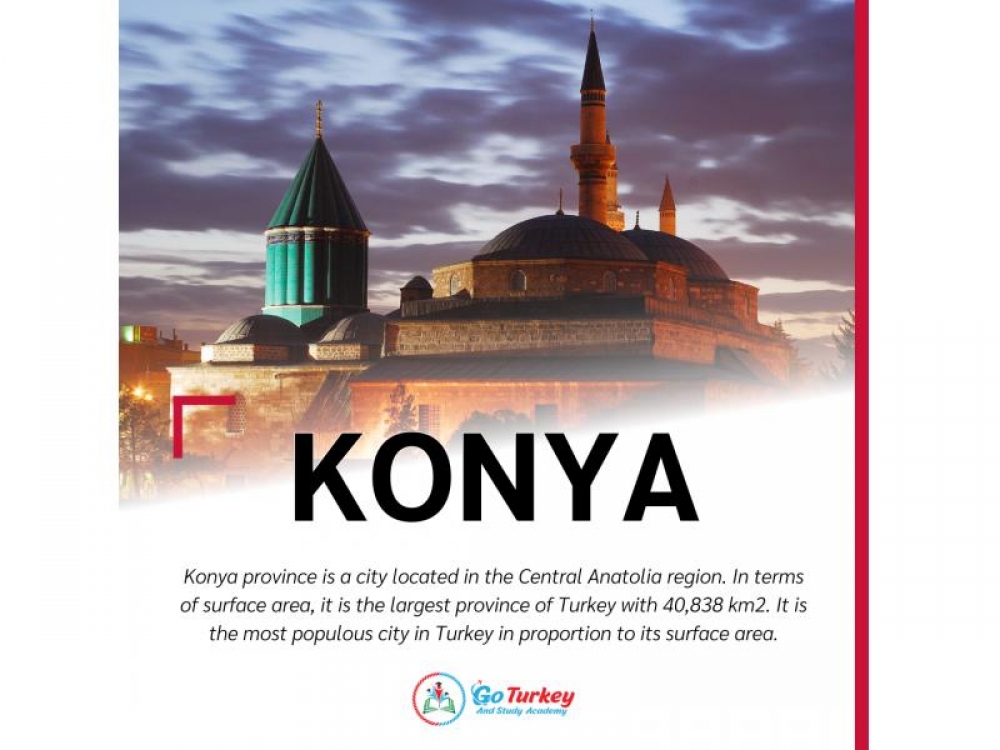 Konya İli, İç Anadolu Bölgesi´nin güneyinde, Anadolu Yarımadası´nın ortasında konumlanmıştır. Türkiye´nin en büyük yüz ölçümüne sahip illerinden biridir. Konya, tarih boyunca çeşitli medeniyetlere ev sahipliği yapmış ve önemli bir kültürel mirasa sahiptir. Kent merkezine yakın bir konumda bulunan Çatalhöyük, Neolitik dönemin en eski ve gelişmiş yerleşim yerlerinden biri olarak bilinir.