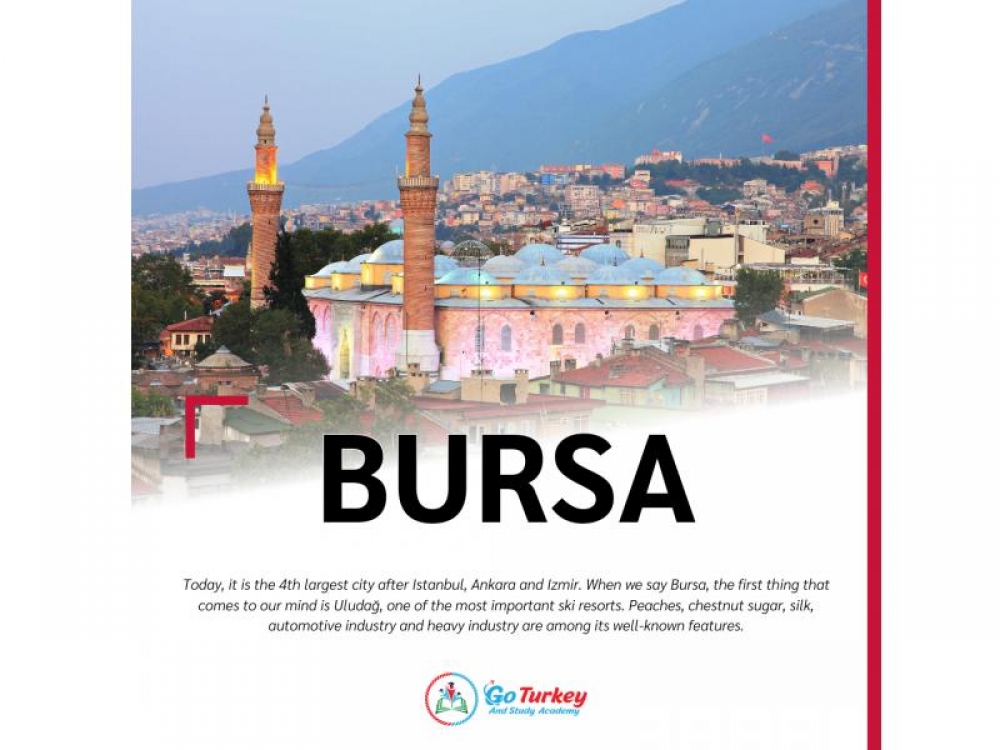 Bursa, Türkiye´nin kuzeybatısında ve Marmara Denizi´nin güneydoğusunda konumlanmıştır. Doğuda Bilecik ve Adapazarı, kuzeyde İzmit ve Yalova, İstanbul ve Marmara Denizi, güneyde Eskişehir ve Kütahya, batıda ise Balıkesir illeriyle çevrilidir. Yeşil alanlarının bol olması sebebiyle "Yeşil Bursa" olarak anılan şehir, Osmanlı İmparatorluğu´nun ilk başkentidir.